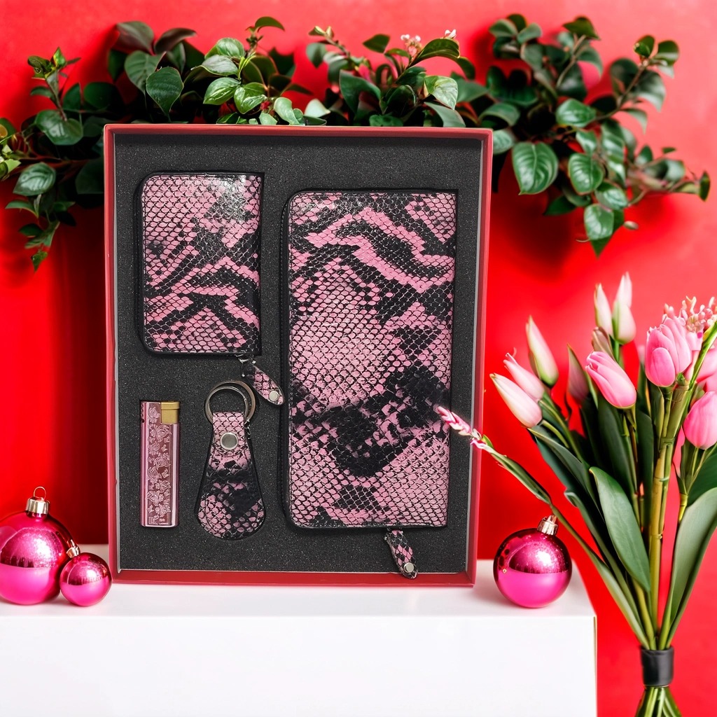 ترکیبی از کیف پول، جاکارتی، خودکار و جاکلیدی از چرم گاوی مرغوب، در باکس چرمی تیرهرنگ. مناسب مدیران خاصپسند.