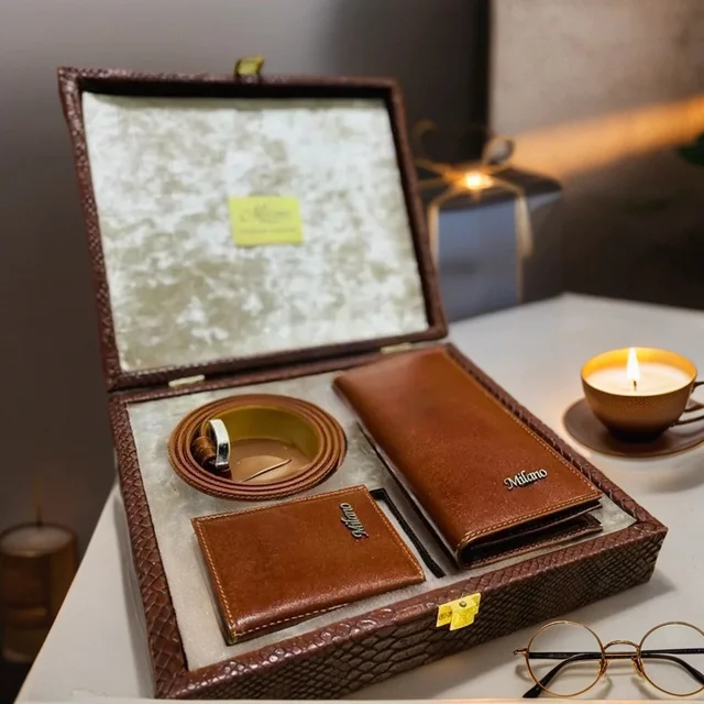 شامل کیف پول، کمربند و جاکارتی در جعبهی چرمی . ایدهآل برای جلسات کاری و هدیههای شرکتی.