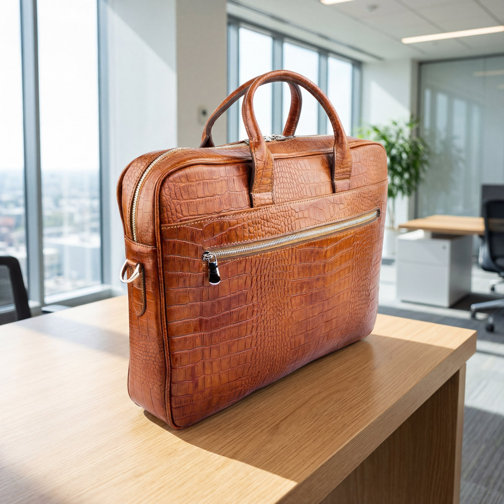 کیف اداری چرم طبیعی دنیس طرح کروکودیل رنگ عسلی S261