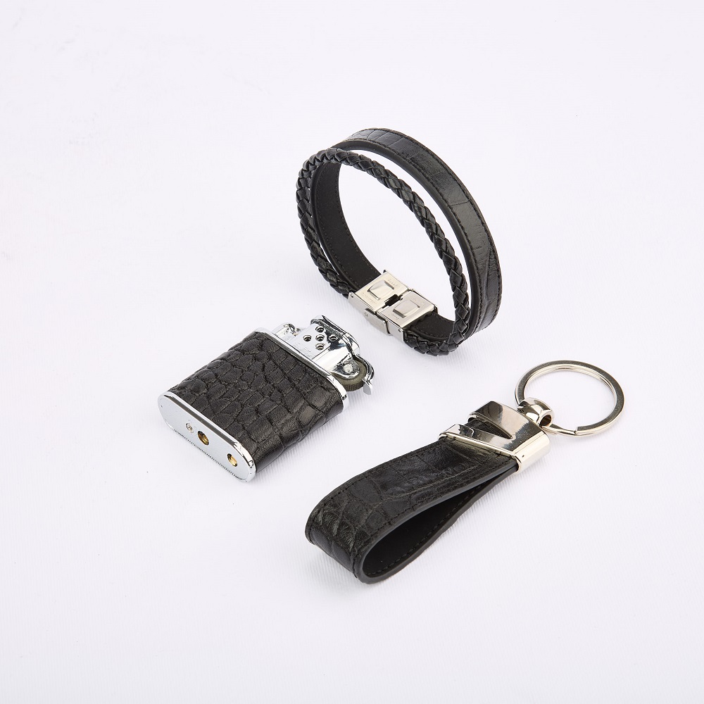 ست هدیه فندک، جا سوییچی و دستبند چرم