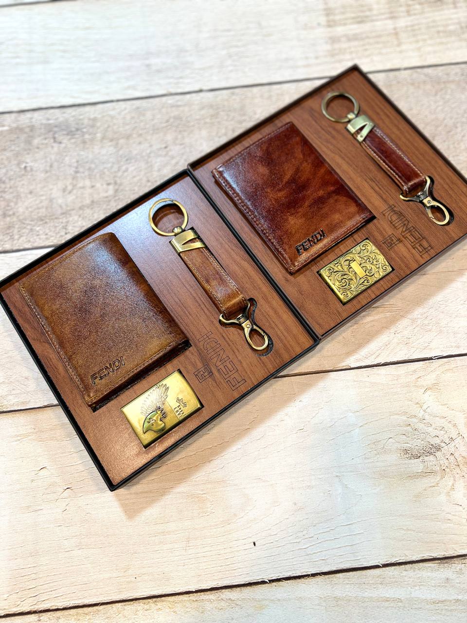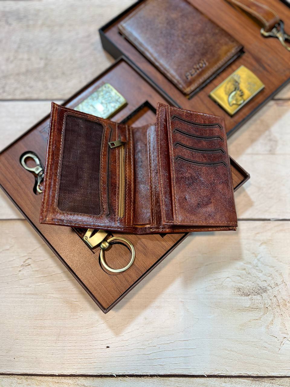 ست 3 تکه کیف و فندک و جاسوییچی FENDI چرم طبیعی