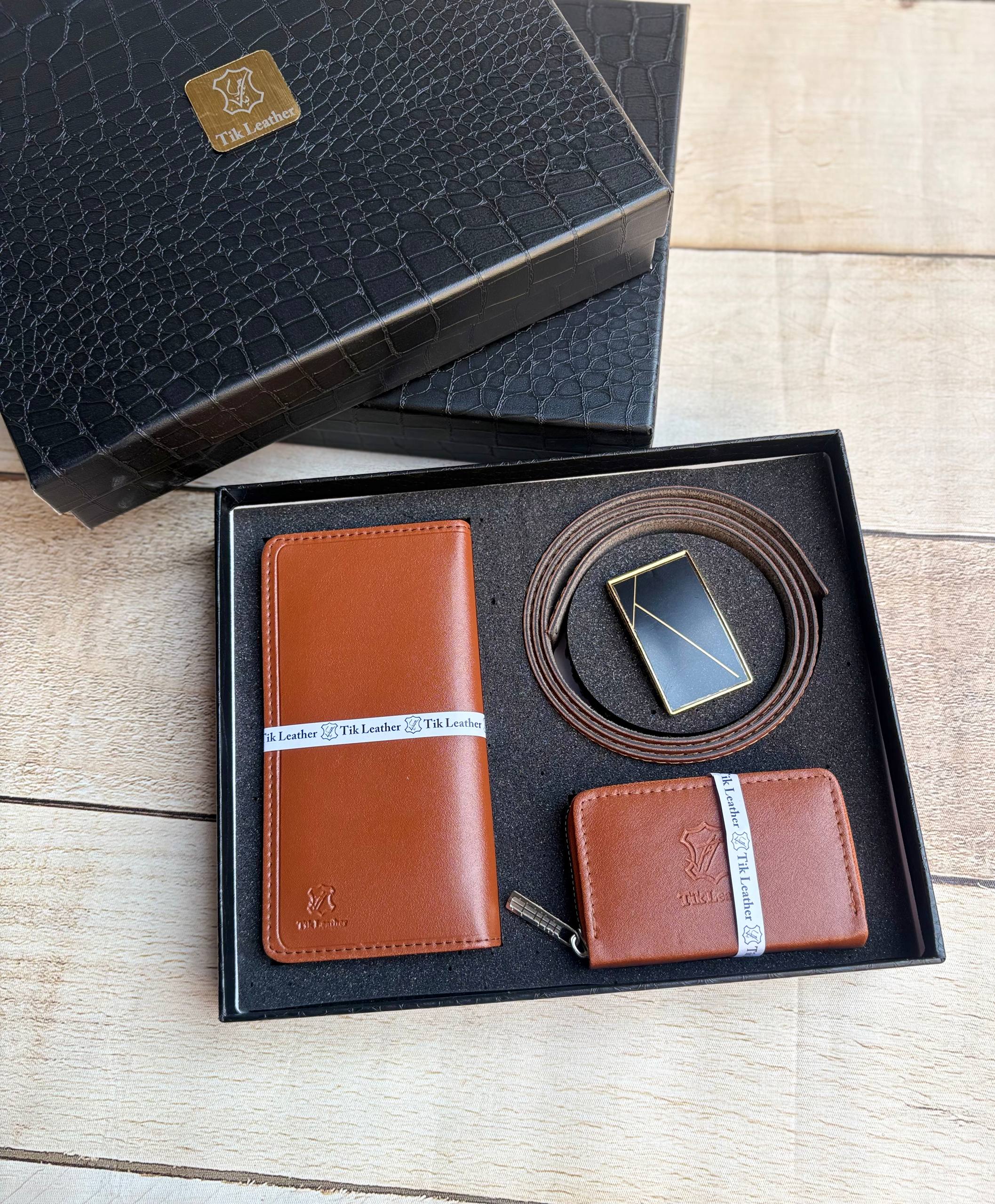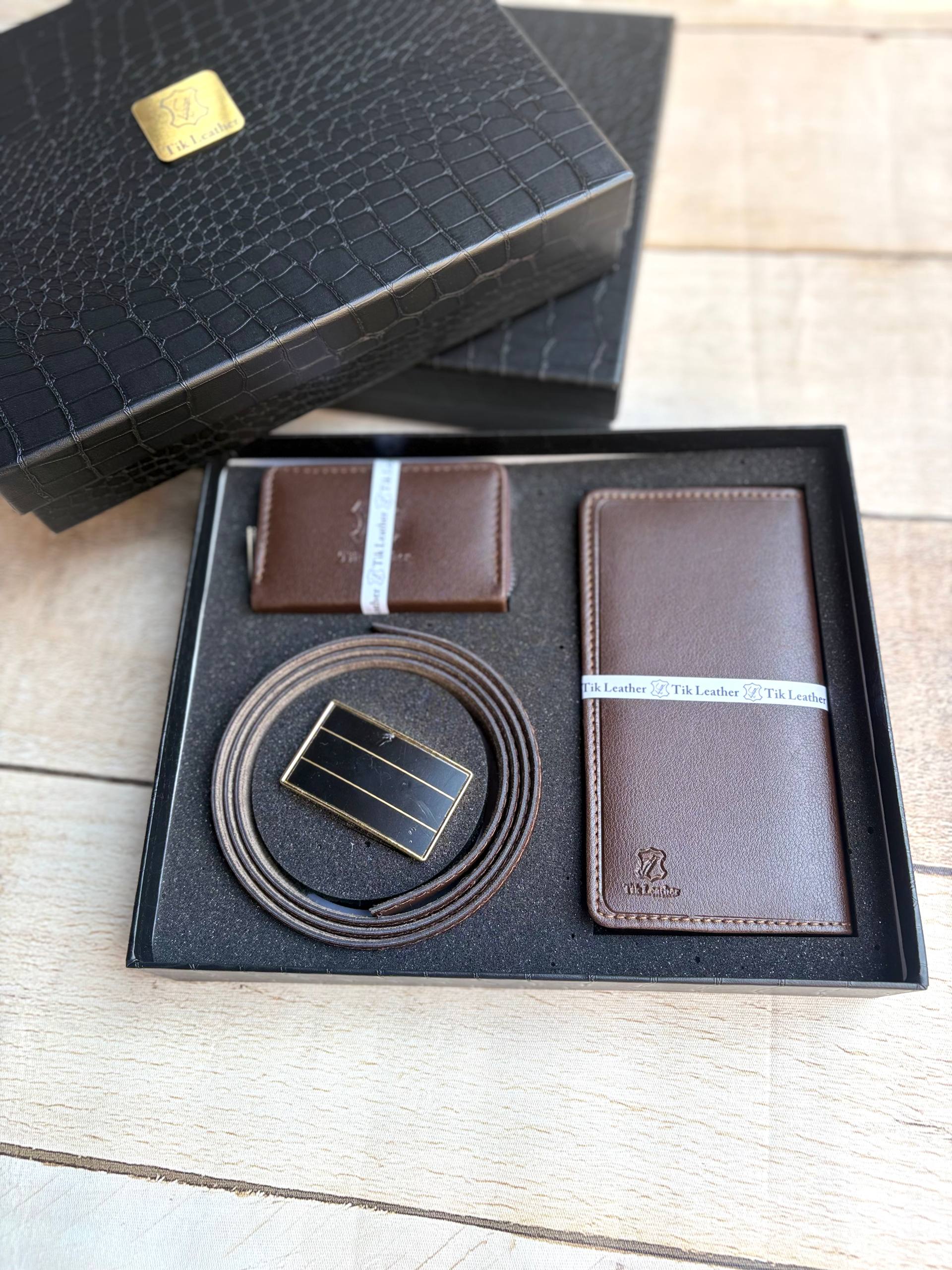 پک هدیه مردانه ست 2 تکه چرم طرح کروکو