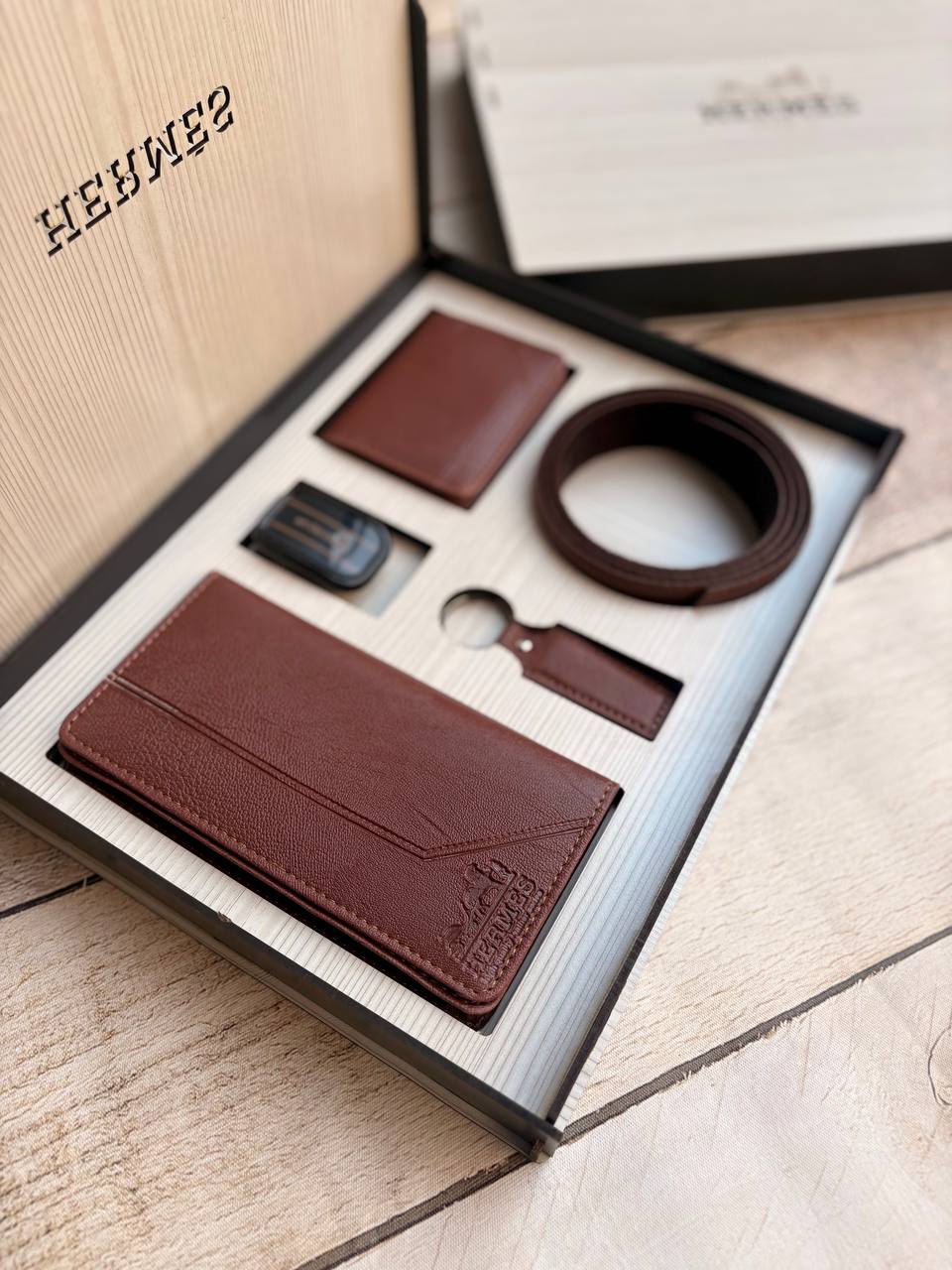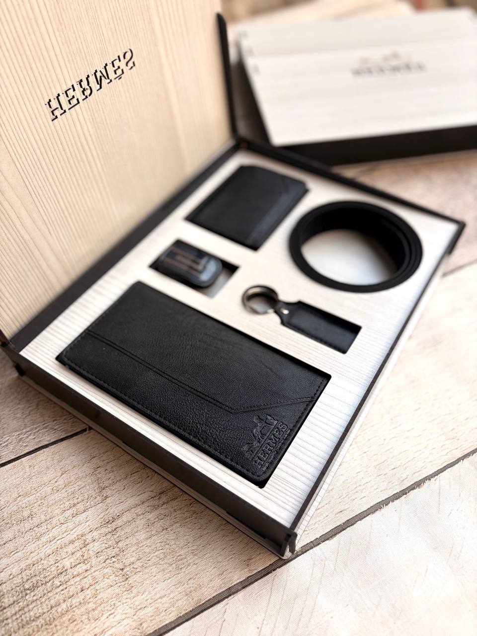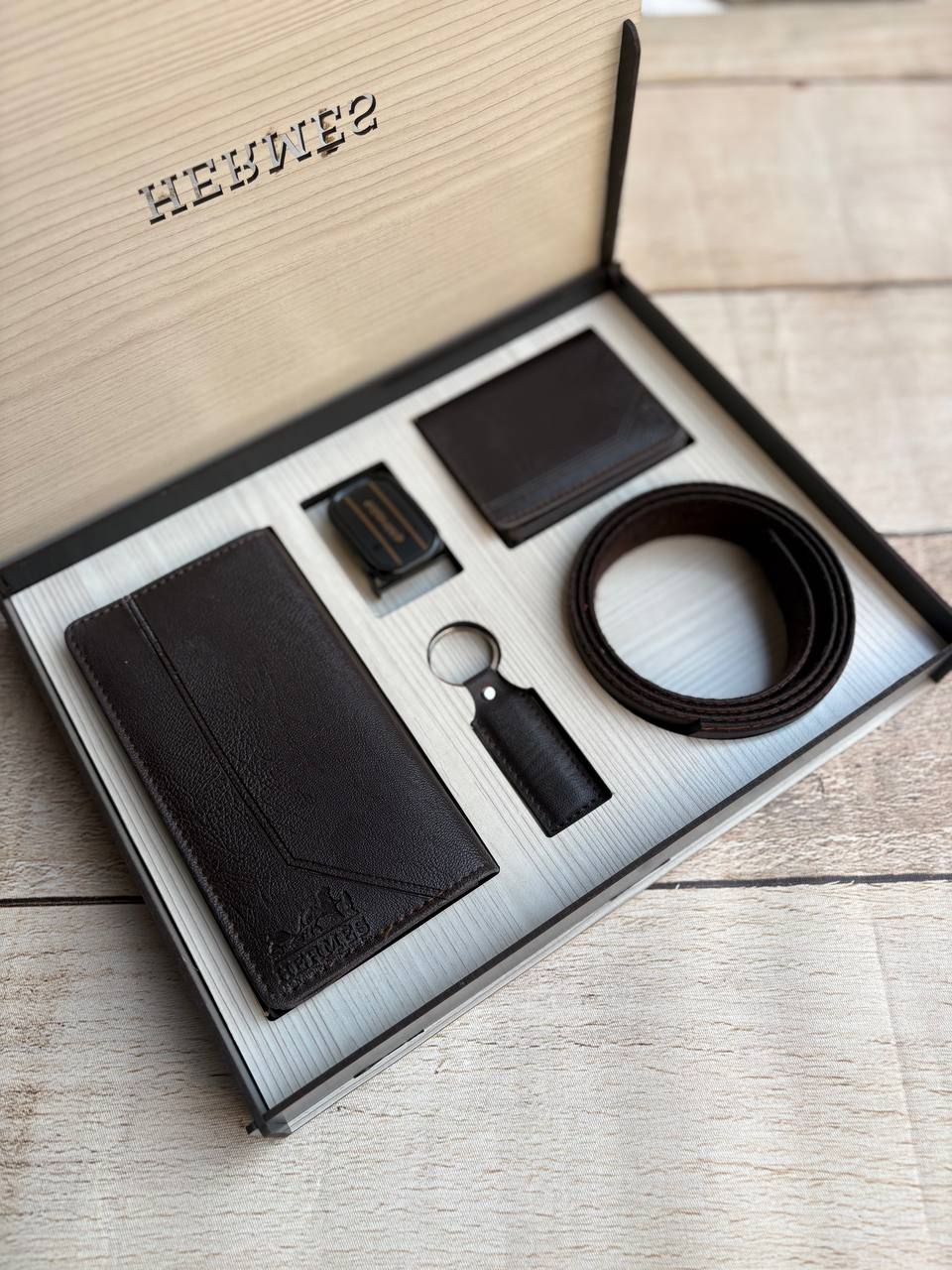 ست کیف و کمربند 4 تکه هرمس با باکس چوبی